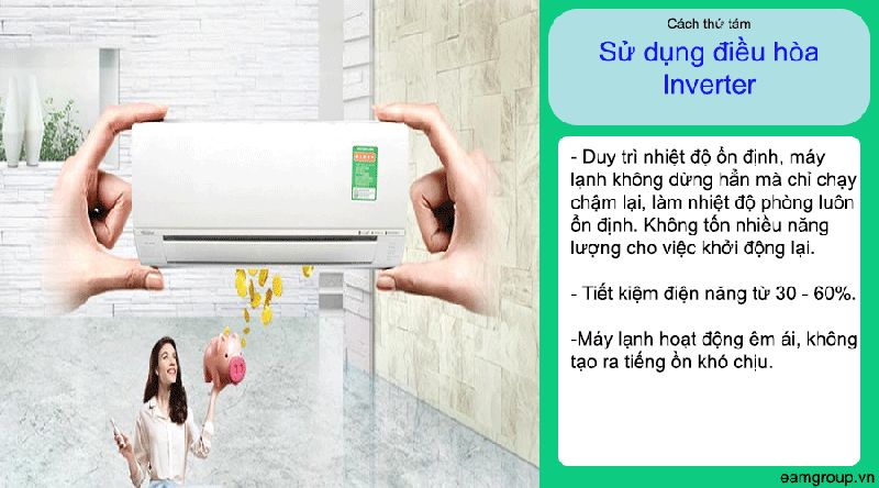 8.Lựa chọn sử dụng máy lạnh inverter tiết kiệm điện:- Thực tế giá bán máy lạnh Inverter trên thị trường cao gấp đôi giá của máy lạnh Non-Inverter.